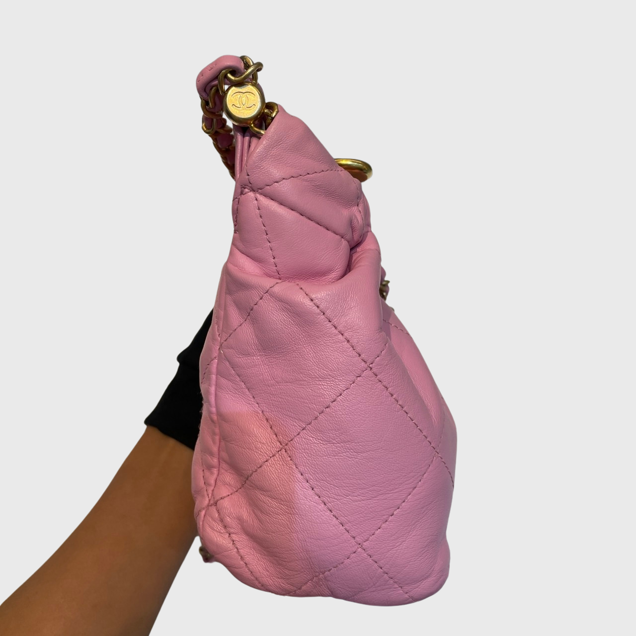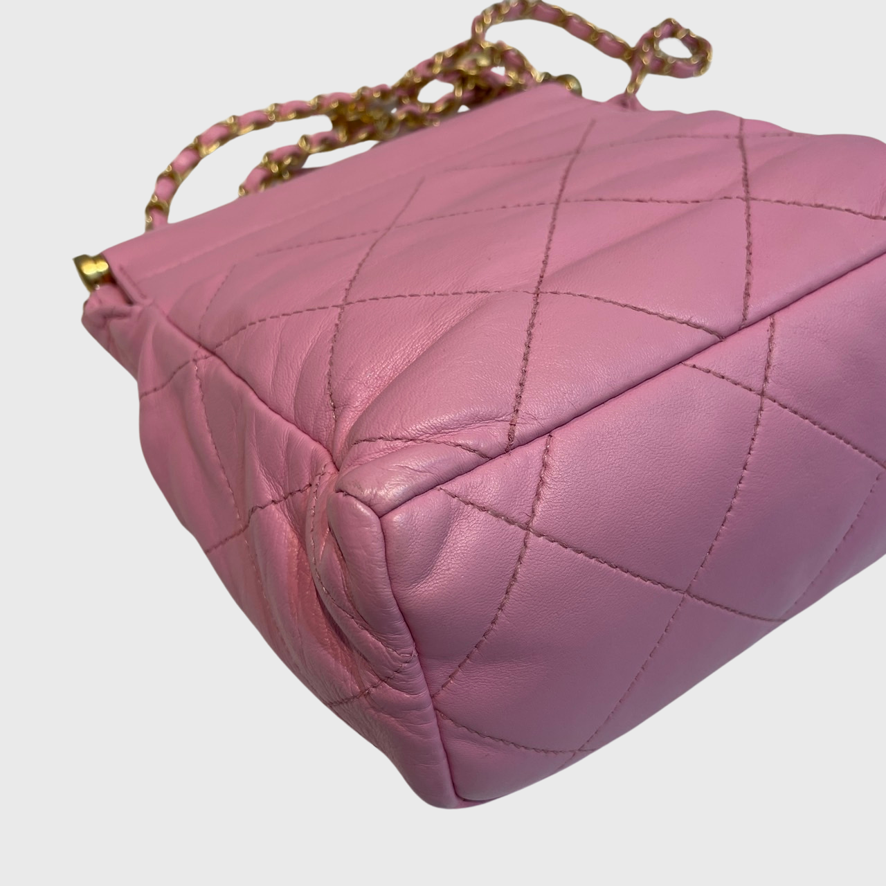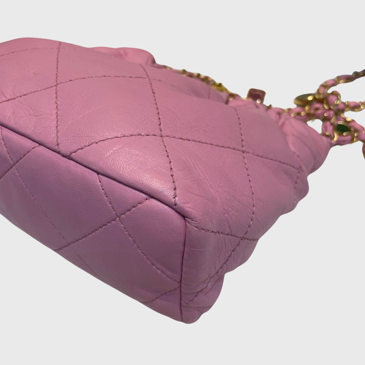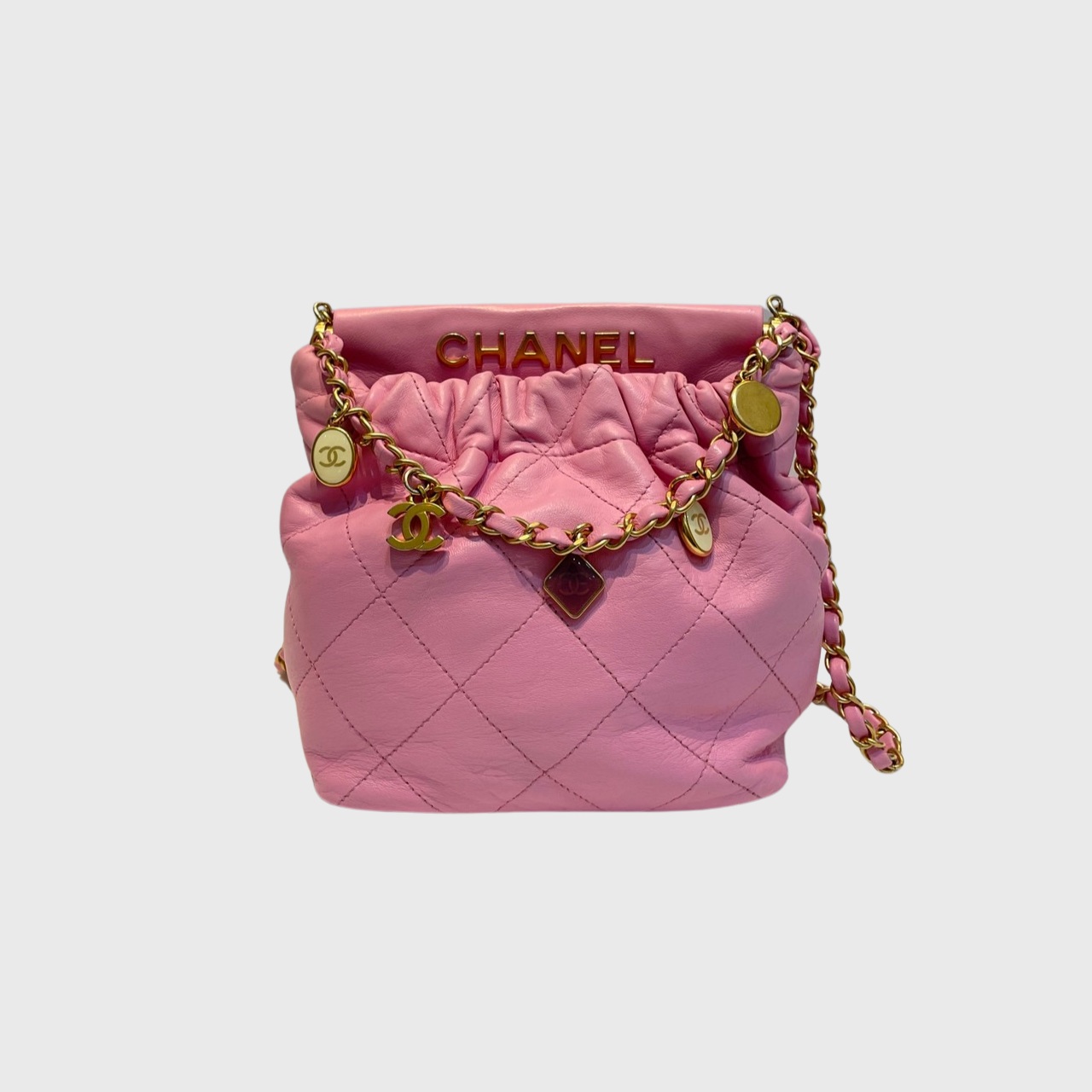 Learn more about our authentication process.Chanel Resin Charms Chain Bucket Bag Lambskin Pink GHW
