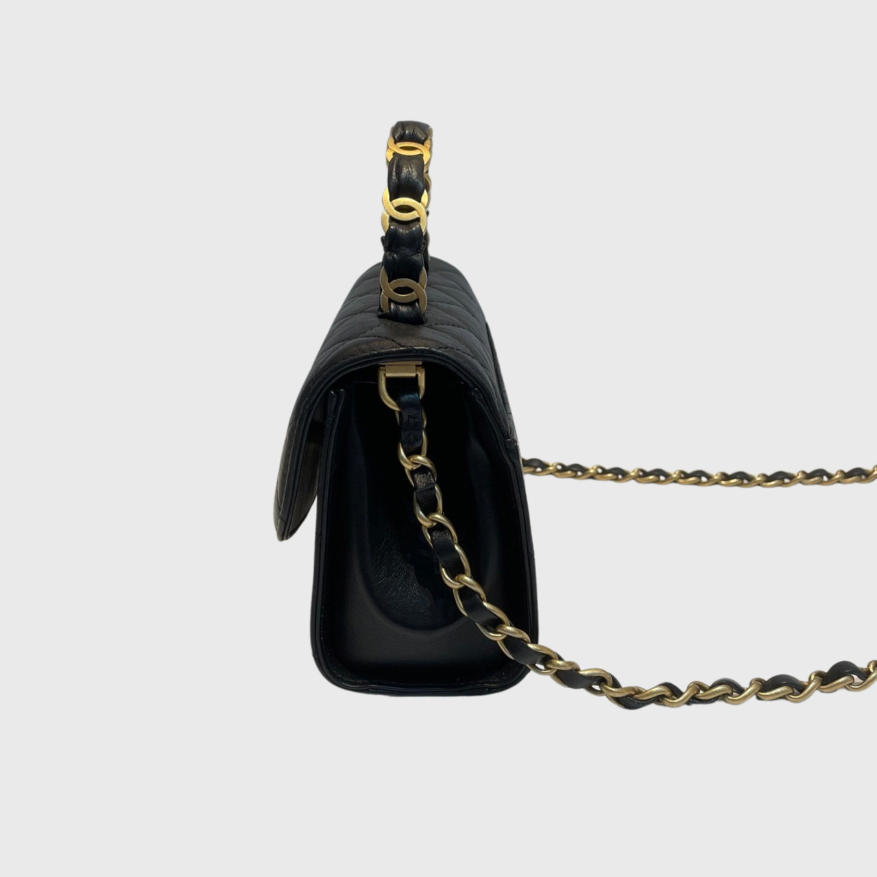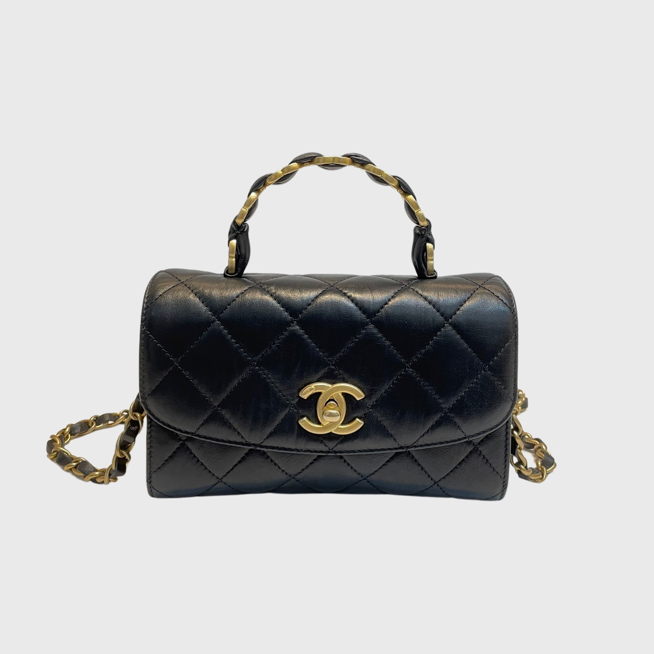 Learn more about our authentication process.Chanel CC Top Handle Lambskin Black GHW