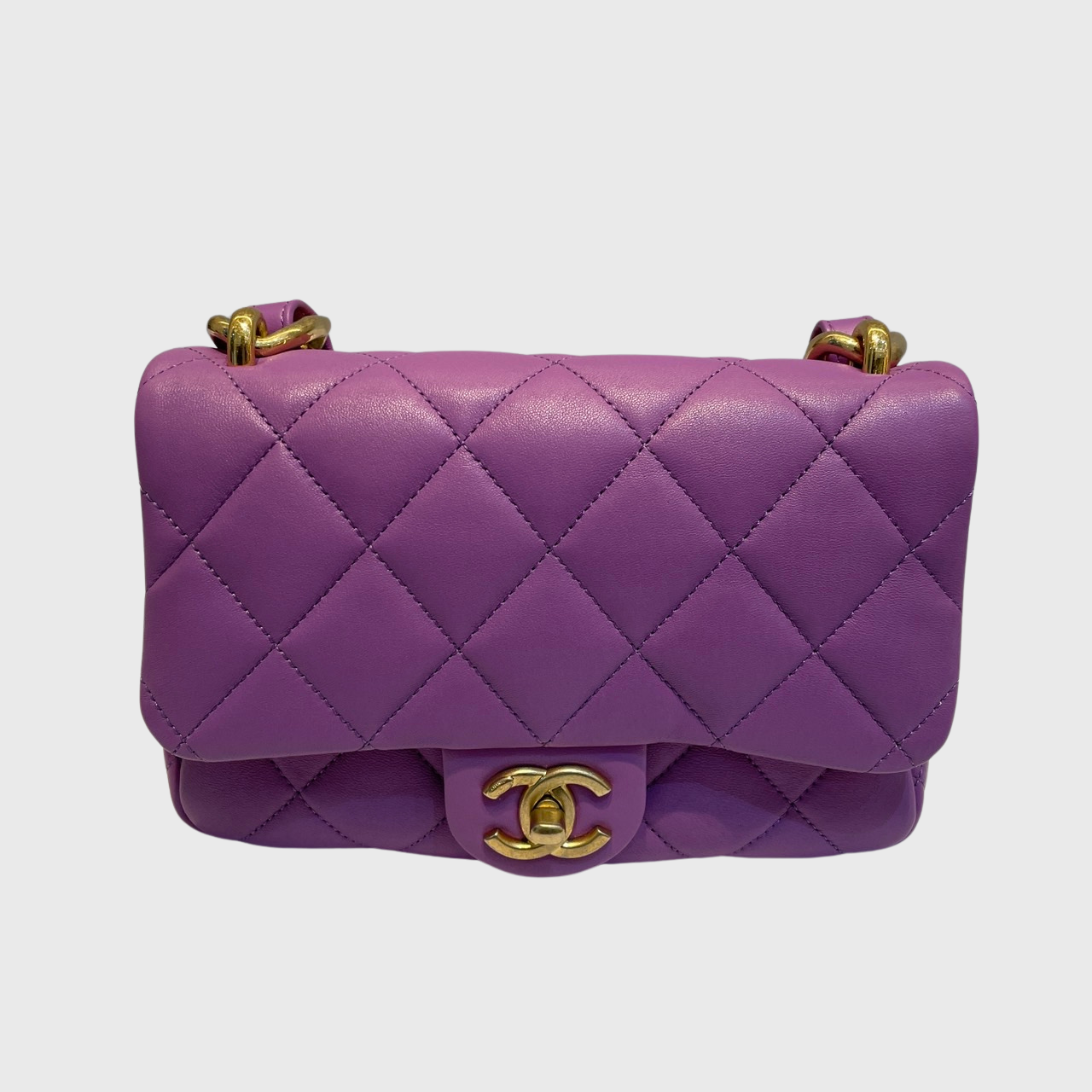 Learn more about our authentication process.Chanel Chunky Chain CC Flap Bag Lambskin Purple GHW
