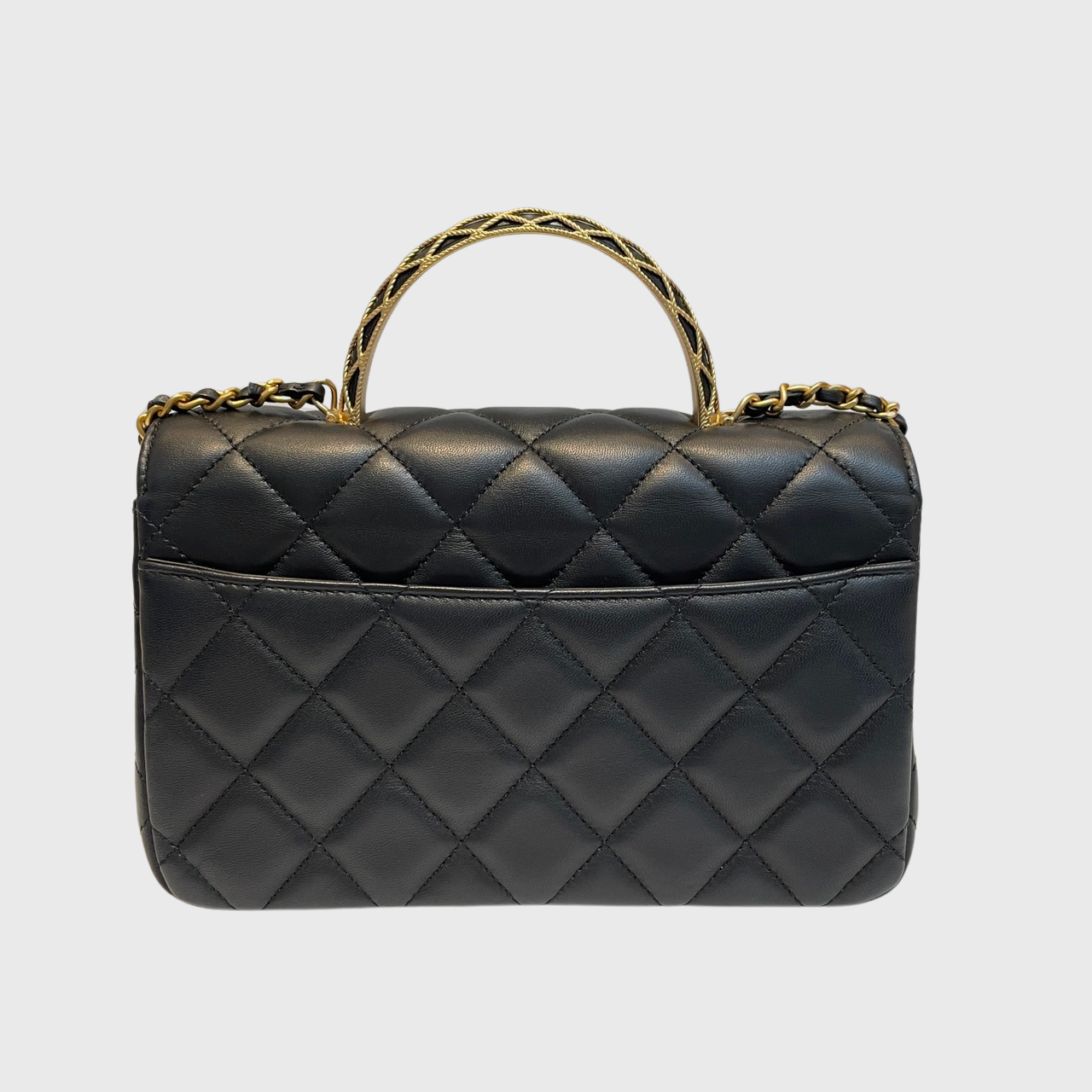 The Chanel/Classique Top Handle boasts a classic design perfect for any occasion. Handcrafted with high-quality materials, it exudes elegance and sophistication. With its spacious interior and sturdy top handle, it offers both style and functionality. Elevate your wardrobe with this timeless accessory.