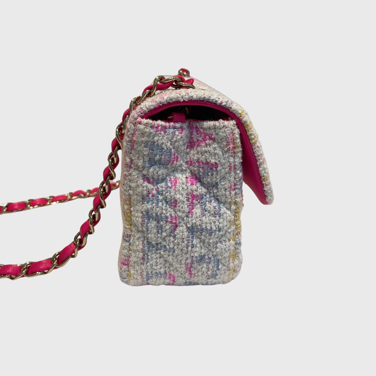 Chanel Mini Rectangular Flap Tweed Pink GHW